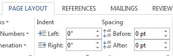 ribbon to bring up a dialog box. In the Spacing section, set Before