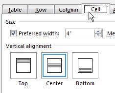 select Row height is: Exactly. Click the Cell tab, set Vertical