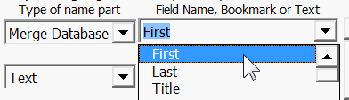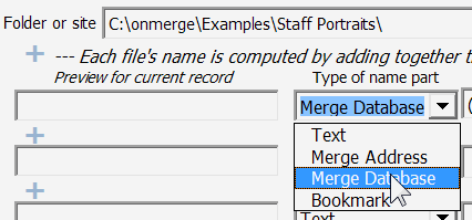 In the first line under the folder name, under Type of name part, click small right triangle to see a list of field types. Select Merge Database.