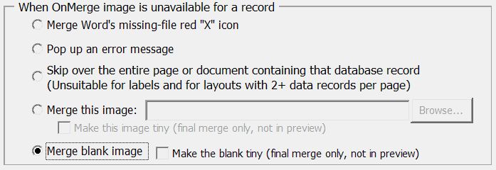 Double-click on an OnMerge Image to pop up the dialog box. Select the Merge Options tab. Select an option as shown here: