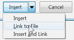 Wait! Do not press the Insert button at the bottom of the Insert Picture dialog box as usual after selecting the file. Instead, press the little triangle on the right edge of that button to get a three-line menu, and click Link to File. NOT Insert or Insert and Link.